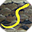 These snakes are black or brown in color, with white bands scattered about their bodies.